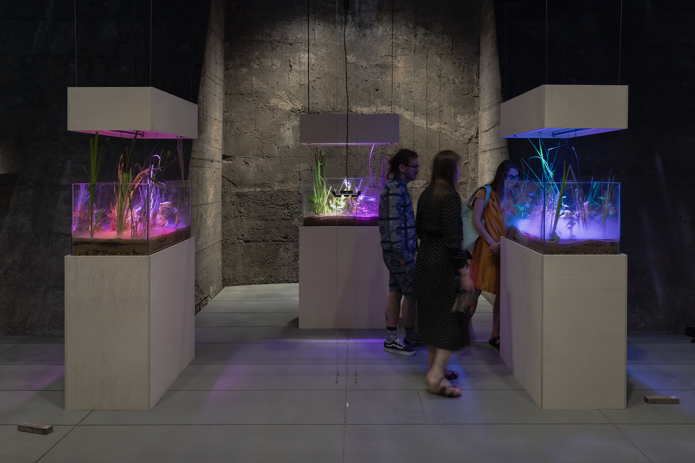 Die globale Erwärmung schreitet voran und es ist faktisch erwiesen, dass sie zu einem großen Teil vom Menschen verursacht wird und der Mensch zu einem der wichtigsten Einflussfaktoren auf biologische, geologische und atmosphärische Prozesse auf der Erde geworden ist. Die Ausstellung präsentiert 18 Positionen international renommierter Künstler:innen, die zum Nachdenken über dringliche Umweltthemen und insbesondere über die vielschichtige Beziehung zwischen menschlichem Handeln und dem Ökosystem anregen. Sie stellt Lösungsansätze und alternative Modelle für ein nachhaltigeres Miteinander mit unserer Umwelt vor und fragt, wie wir unsere digitalen Werkzeuge für eine nachhaltige Nutzung unserer Ressourcen einsetzen können. Entsprechend fokussiert die Ausstellung auf künstlerische Praktiken, in denen Medien, Technologien und technowissenschaftliche Methoden in der Kunst zum Einsatz kommen. Ein kreativer Einsatz digitaler Medien und neuer Technologien – von Künstlicher Intelligenz, Virtueller Realität, interaktiven und immersiven Installationen, Multimedia-Skulpturen und Videoinstallationen – lädt das Publikum zur kritischen Auseinandersetzung ein, hinterfragt die Vorstellung, dass der Mensch im Zentrum der Schöpfung steht und ermutigt uns, die egozentrische Perspektive auf diesen Planeten aufzugeben und unsere Beziehung zur Natur neu zu entdecken. Der Titel der Ausstellung verweist darauf, dass wir nur diese eine Erde haben. Wo könnte diese Gebundenheit besser in Szene gesetzt werden als in den Räumen des ehemaligen Rohstofflagers in Esch-Belval.