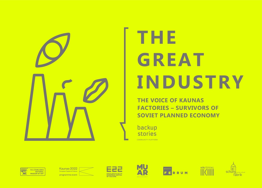 Cette année, Esch2022 partage le titre de « Capitale Européenne de la Culture » en autres avec Kaunas, la deuxième plus grande ville de Lituanie. Pour promouvoir ce lien et mettre en avant les valeurs communes et l‘histoire similaire de l‘industrie qui s‘est effondrée et qui est restée ancrée dans le paysage et la mémoire des citoyen.nes entre Kaunas, Lituanie et la région du « Minett », Luxembourg, la collaboration entre la community platform « Backup Stories » du M.K. Čiurlionis National Museum of Art, une collaboration entre d‘anciens patrons d‘usine, des artistes et le personnel des musées et la Schungfabrik - le MUAR est une opportunité à ne pas manquer! L'exposition « The Great Industry » invite à découvrir une sélection des meilleures idées, histoires de la communauté et photos documentaires, exemples de production industrielle et œuvres d'art contemporain des expositio