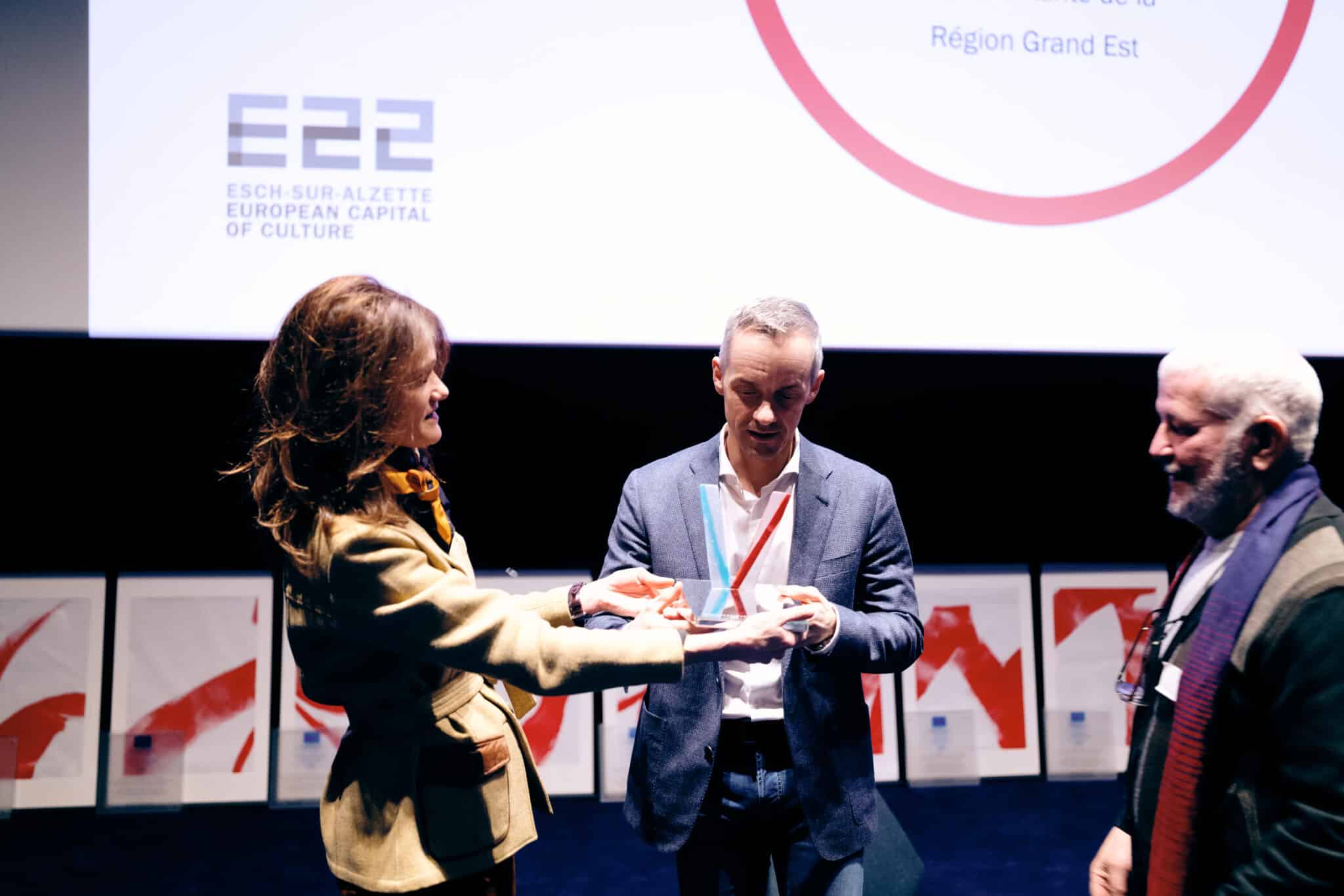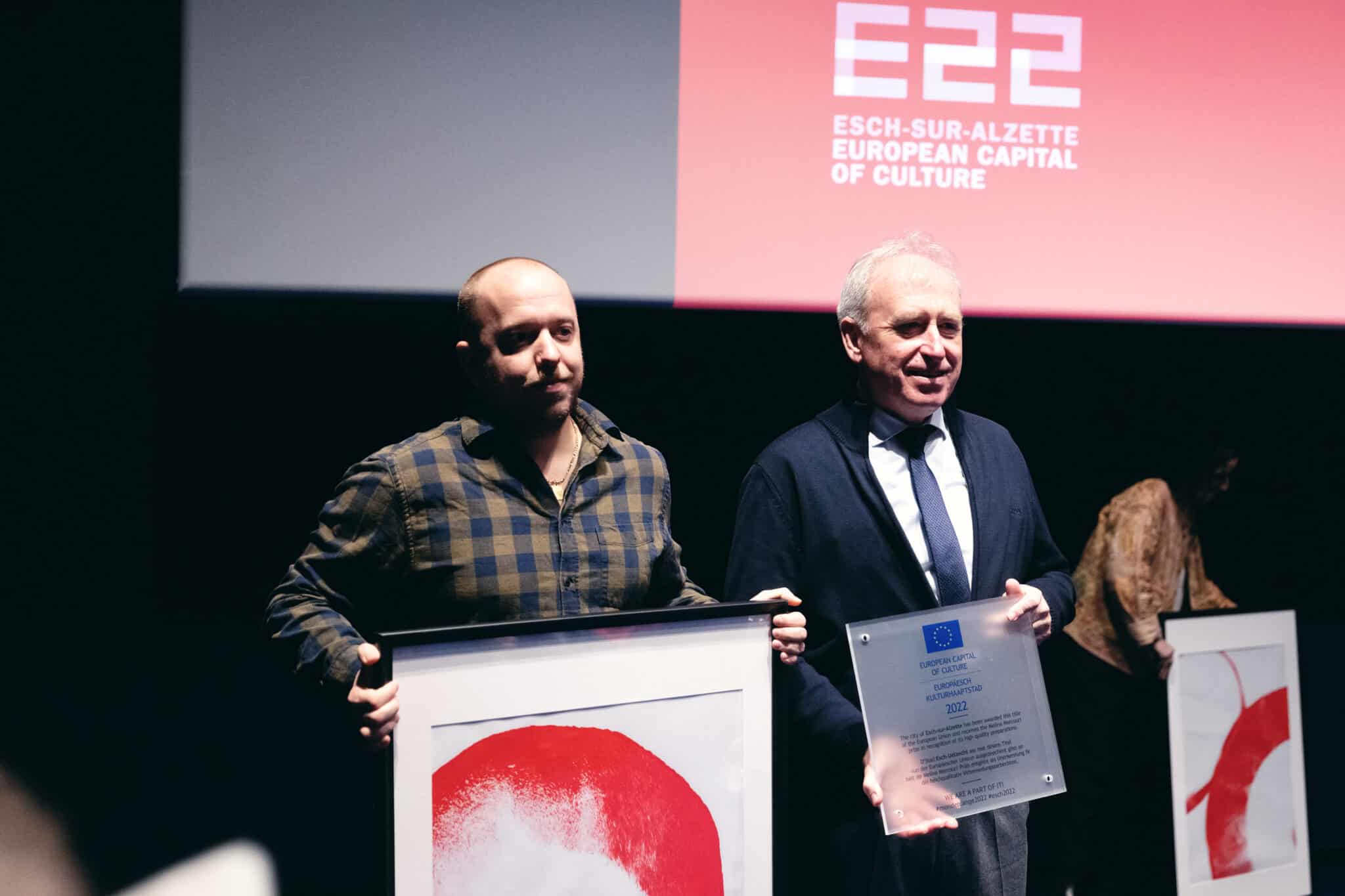 Bei der Zeremonie verpflichteten sich die beiden Vorsitzenden der Gemeindeverbände Georges Mischo für das PRO-SUD-Syndikat und Patrick Risser für die CCPHVA, das Erbe von Esch2022 weiterzuführen. Auch die Region Grand Est nahm an der Veranstaltung teil und sicherte ihre weitere Unterstützung zu. Symbolisch wurde eine Skulptur der lothringischen Künstlerin Marie Flambard überreicht.