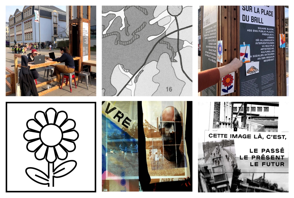 Pendant une dizaine de jours en mars 2022, l’aboutissement de BLOOM proposera une situation artistique sous la forme d’une installation architecturale éphémère dans le quartier Brill qui va regrouper, réunir, concentrer l’ensemble des matériaux du projet : vidéos, textes, images, sons, dessins, sculptures, etc. À la fois espace d’exposition, de rencontre et de collecte, elle continuera à se construire et à s’étendre au fil des jours grâce aux contributions de chacun : conversations avec des témoins convoqués ou spontanés dans un espace agora, récoltes et mise en jeu d’archives personnelles, productions plastiques, tournages, création musicale, etc. Une agora au cœur de la ville et ouverte à tous, d’où naîtra une œuvre éphémère, une nouvelle vision de l’histoire d’Esch-sur-Alzette, faite de toutes les petites histoires que vous nous apporterez dans ce chantier historique à ciel ouvert.